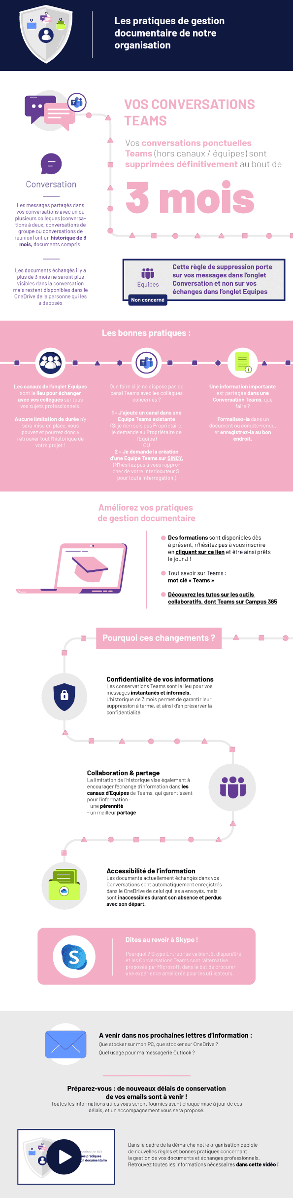 Ces contenus vidéo sont complétés par trois infographies dédiées à Teams, à la messagerie et au poste de travail, conçues comme des supports de rappel simples et immédiatement exploitables.