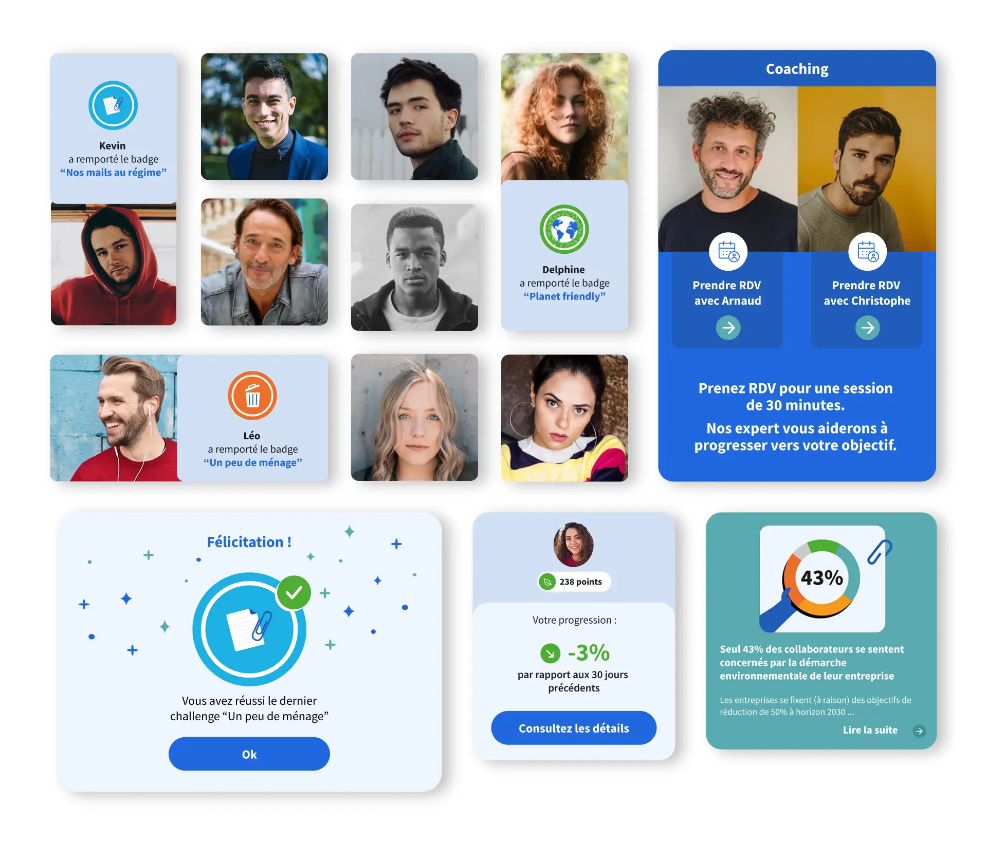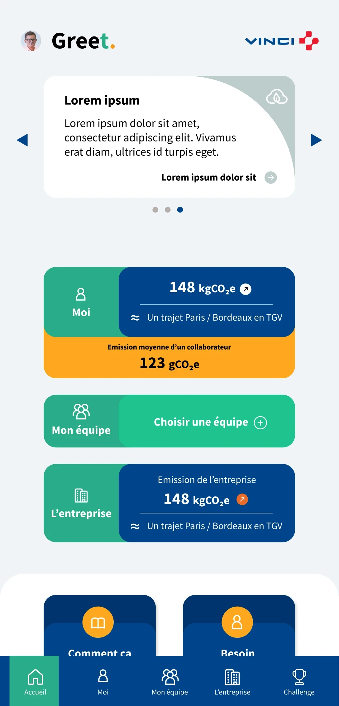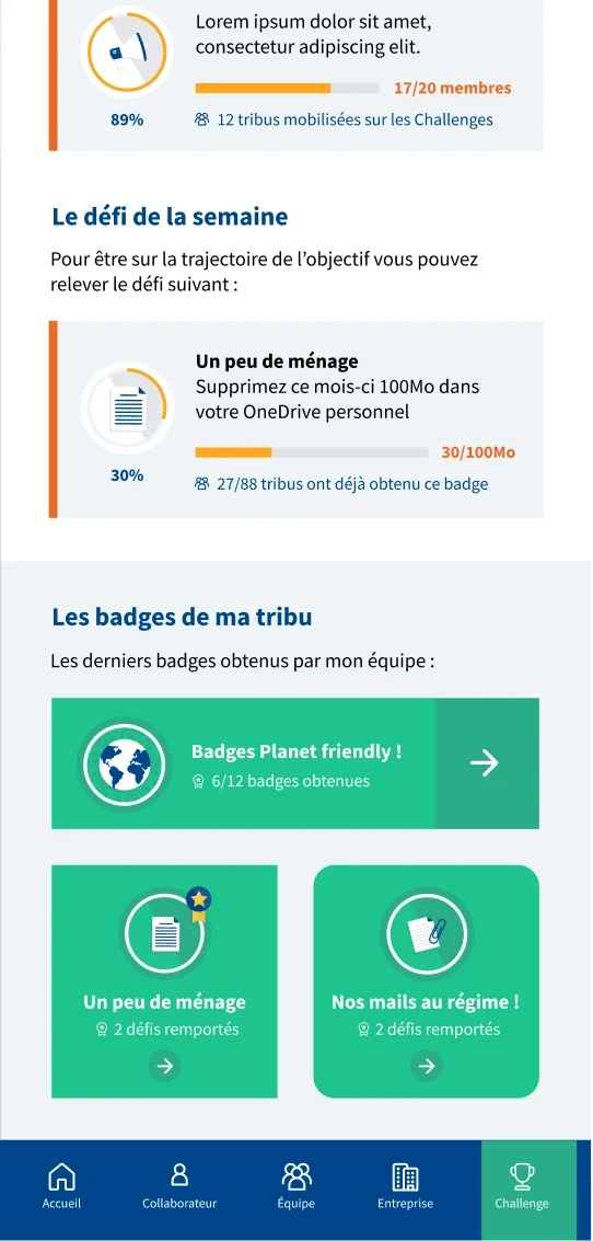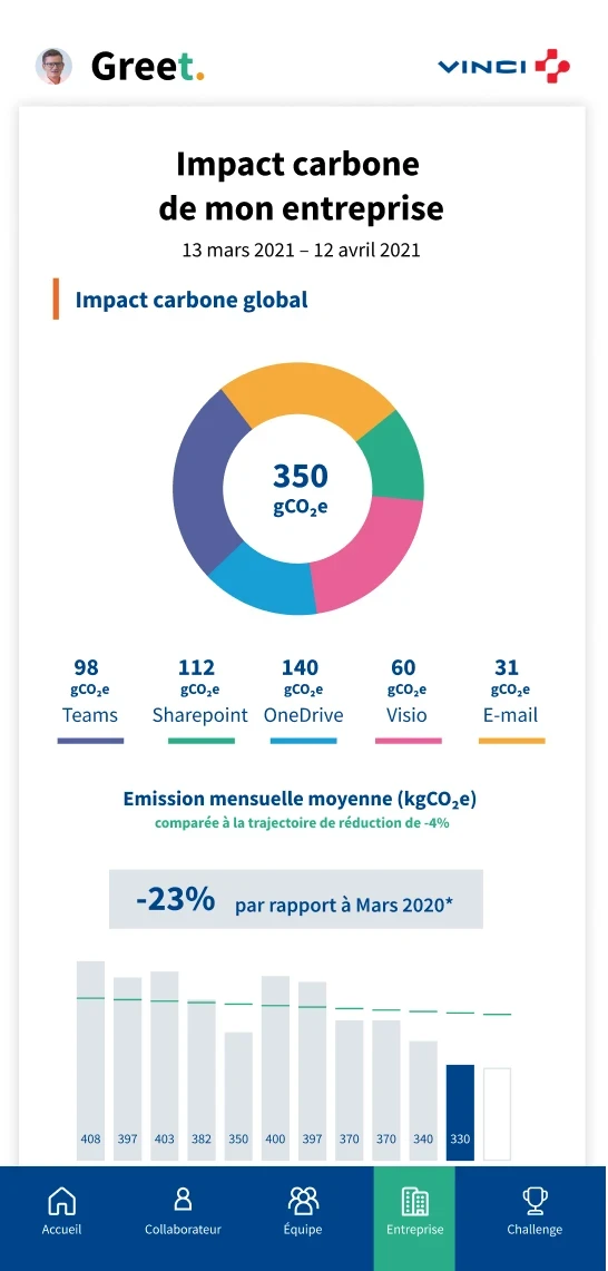 Développée pour des clients tels que VINCI, Accor, L’Oréal et Swiss Life, la plateforme s’est progressivement enrichie : suivi des émissions de CO₂, sensibilisation, gamification, prévention du sur-engagement, organisation du travail et visualisation des trajectoires d’émissions individuelles ou d’équipe.
