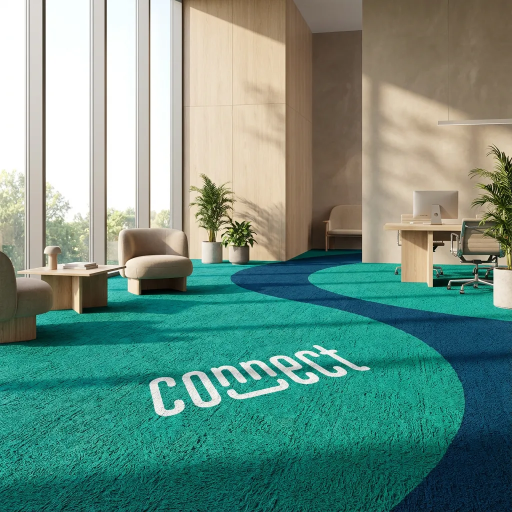 L’identité graphique développée s’inscrit dans la continuité de la marque Tarkett tout en la faisant évoluer vers un univers plus convivial. La palette combine le bleu marine historique comme couleur dominante, un vert menthe en couleur secondaire et des touches de curry utilisées ponctuellement pour dynamiser certaines pages et temps forts de communication.